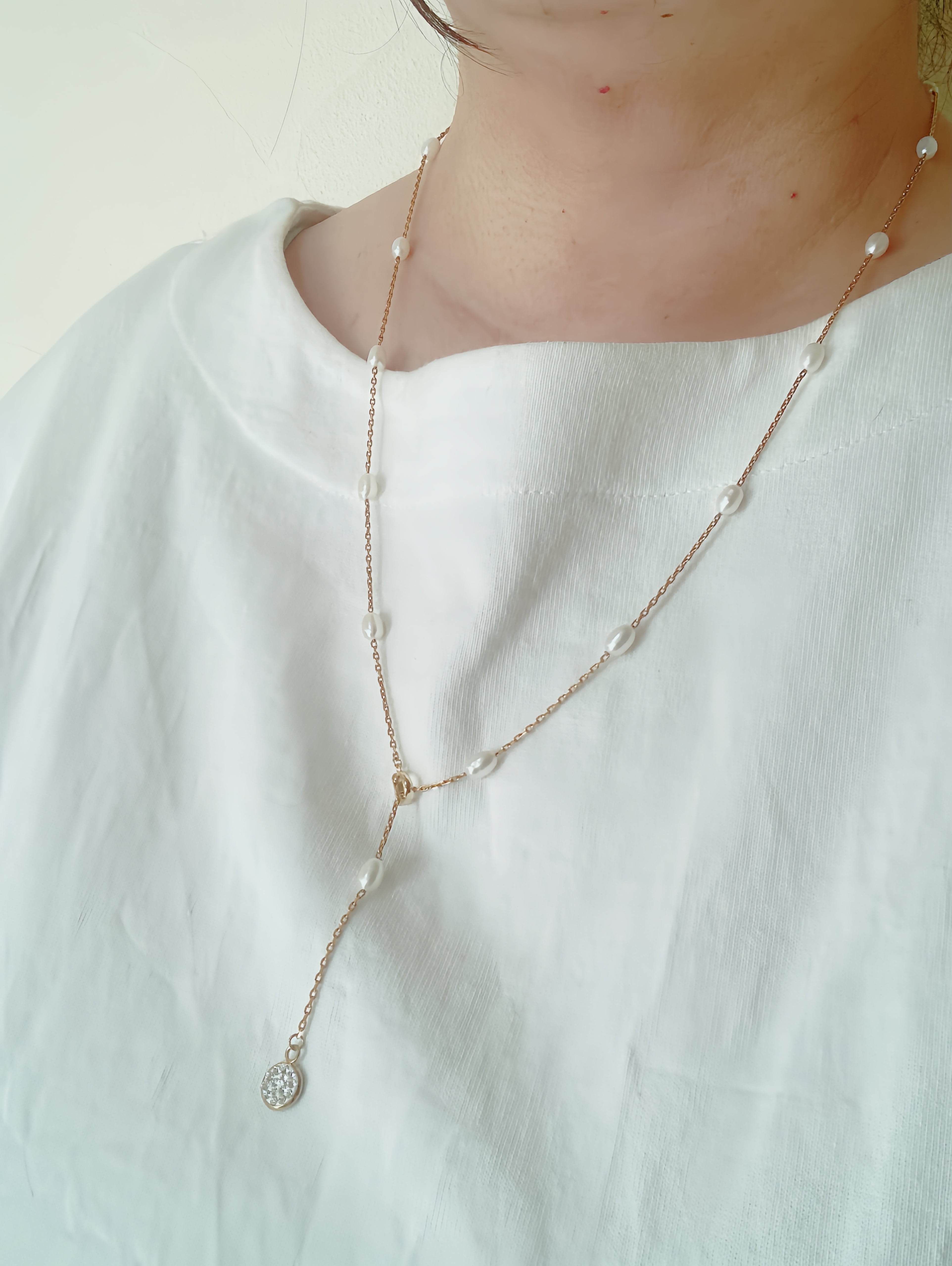 淡水パール ステーション ラリエット風Yラインネックレス ロング77cm サージカルステンレス(ゴールド/シルバー)