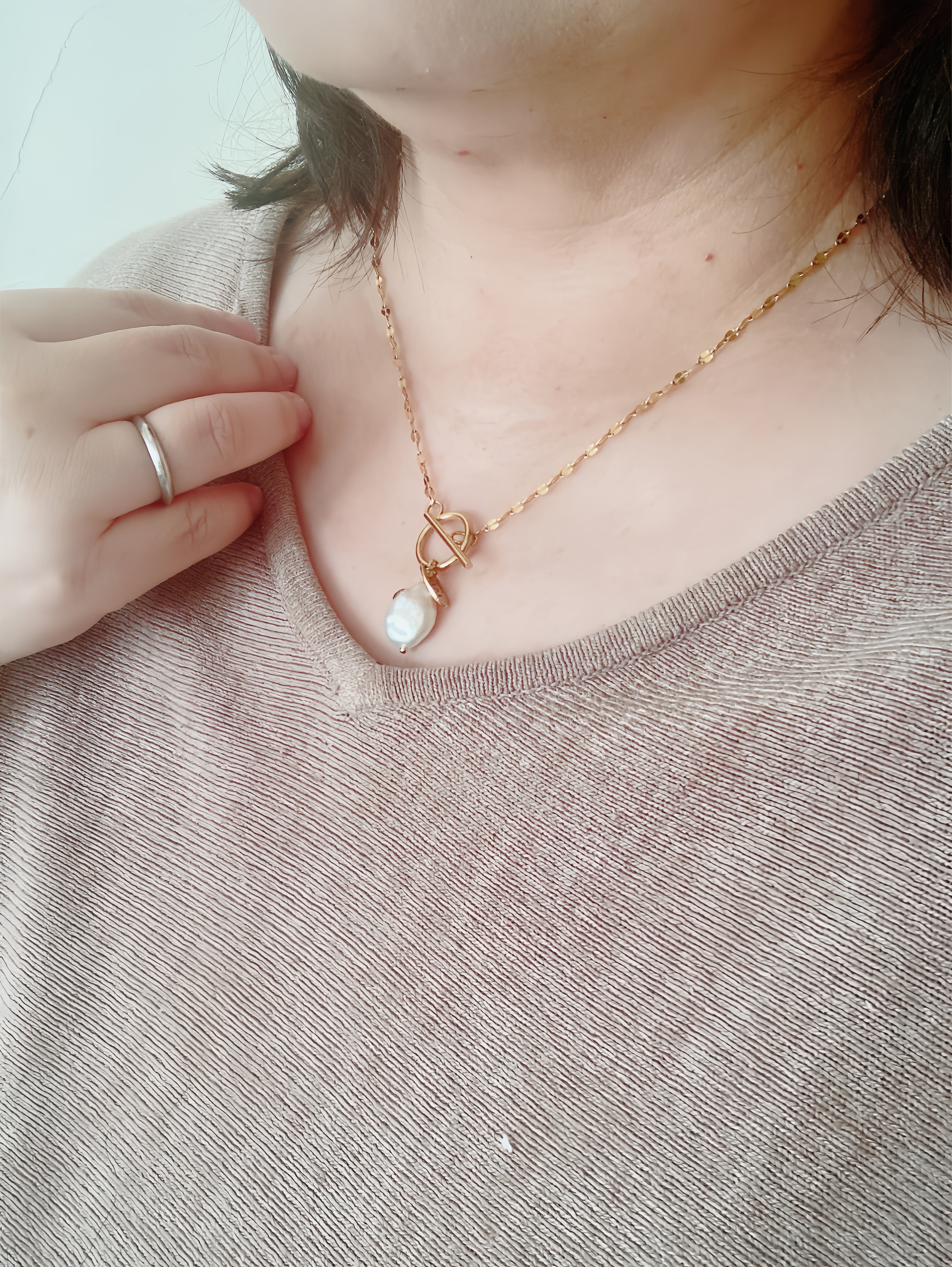 【一点もの】真珠の個性を輝きに変えて。金彩バロックパールのマンテルネックレス